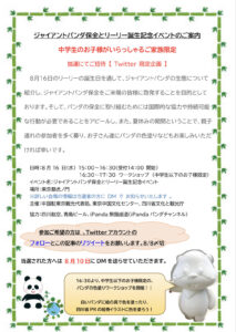 ジャイアントパンダ保全とリーリー誕生記念イベントのご案内