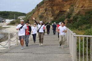 このファンランは千葉県銚子市屛風ヶ浦で開催され、距離は約3キロ。 中国と日本の青少年達はグループに分かれてスタートし、互いに助け合いながら美しい海岸線を走りました。 野外活動の後、主催者は特別に「中日青年交流会」も開催し、参加者の皆様は素晴らしい中国書道と茶道のパフォーマンスを楽しみ、交流会ではそれぞれの考えや意見を交換しました。交流会終了後の感想発表会では、今回の活動を通じてお互いの国への理解が深まり、今後も中日友好のために努力・貢献したいと多くの方が語りました。