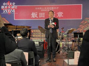日本国土交通省観光庁国際観光課課長飯田 修章様からはご挨拶の中で、中国との関係を懐かしみ、かつて何度も中国を旅行した忘れられない思い出を語られました。また、中国の新しい30日間ビザ免除政策を喜ばしく思い、この政策の導入が両国民の交流を促進し、相互理解と友好を深め、中日関係の継続的な発展の促進となることを期待すると述べられました。