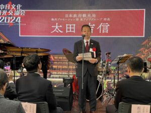 12月17日、中国駐東京観光代表処が主催した「中日文化観光交流会2024」が東京で盛大に開催されました。中国駐東京観光代表処の欧陽安首席代表、日本国土交通省観光庁国際観光課課長飯田 修章様、日本政府観光局(JNTO)海外プロモーション部部長太田吉伸様のほか、日本旅行業協会(JATA)、阪急交通社、富士急行、JTB、カモメツーリスト、四川航空、時事航空、スプリング・ジャパン、中国日報、NHK、共同通信社、日本経済新聞社、毎日新聞社(※敬称略)など100名を超える中日の旅行・文化・メディア関係者にご出席いただきました。