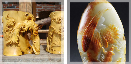 中国の彫刻工芸品には、玉彫り、木彫り、竹製品、硯及び石炭、水晶、木の根、貝穀などの彫刻がある。これらの彫刻品は風格があり、お土産として人気がある。